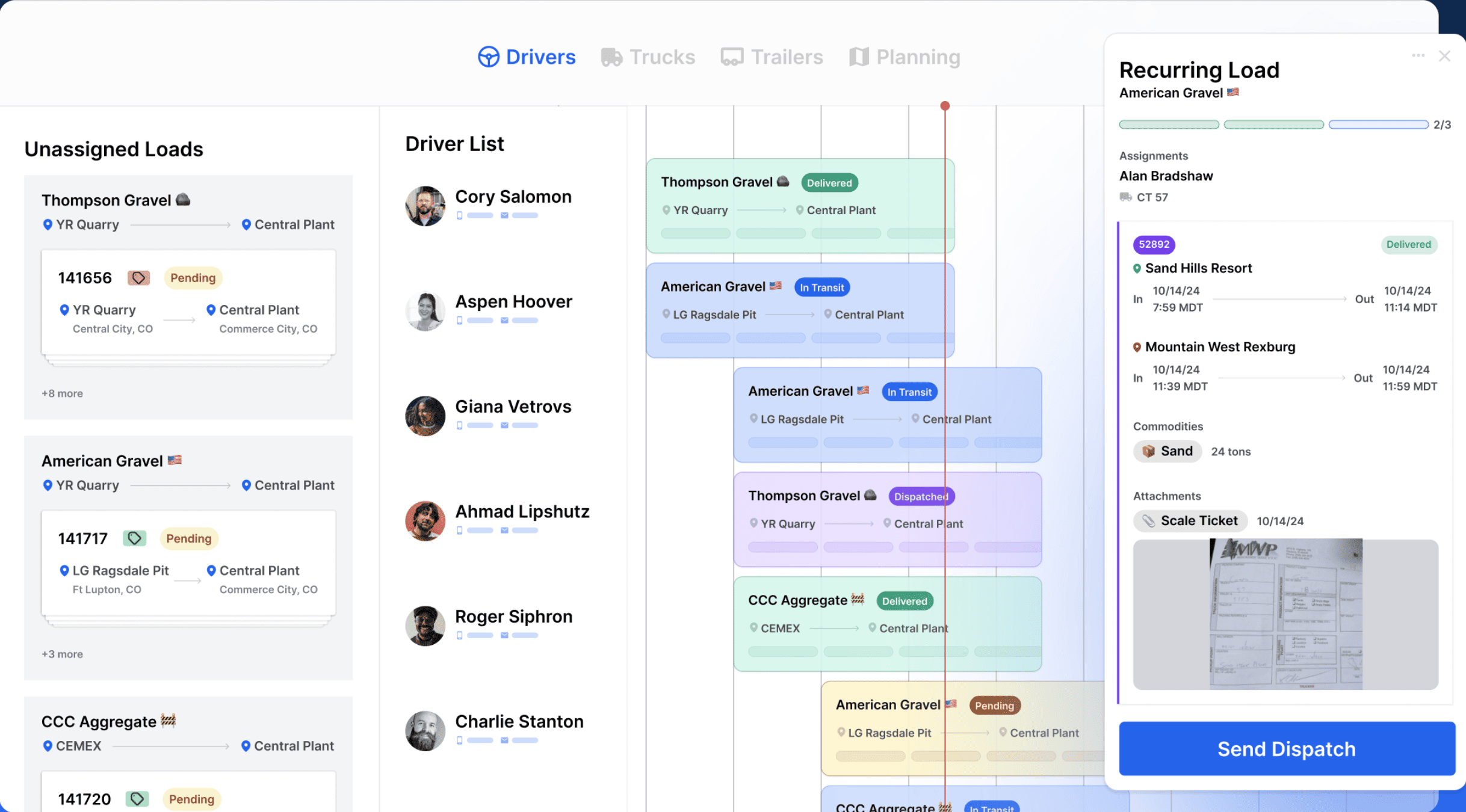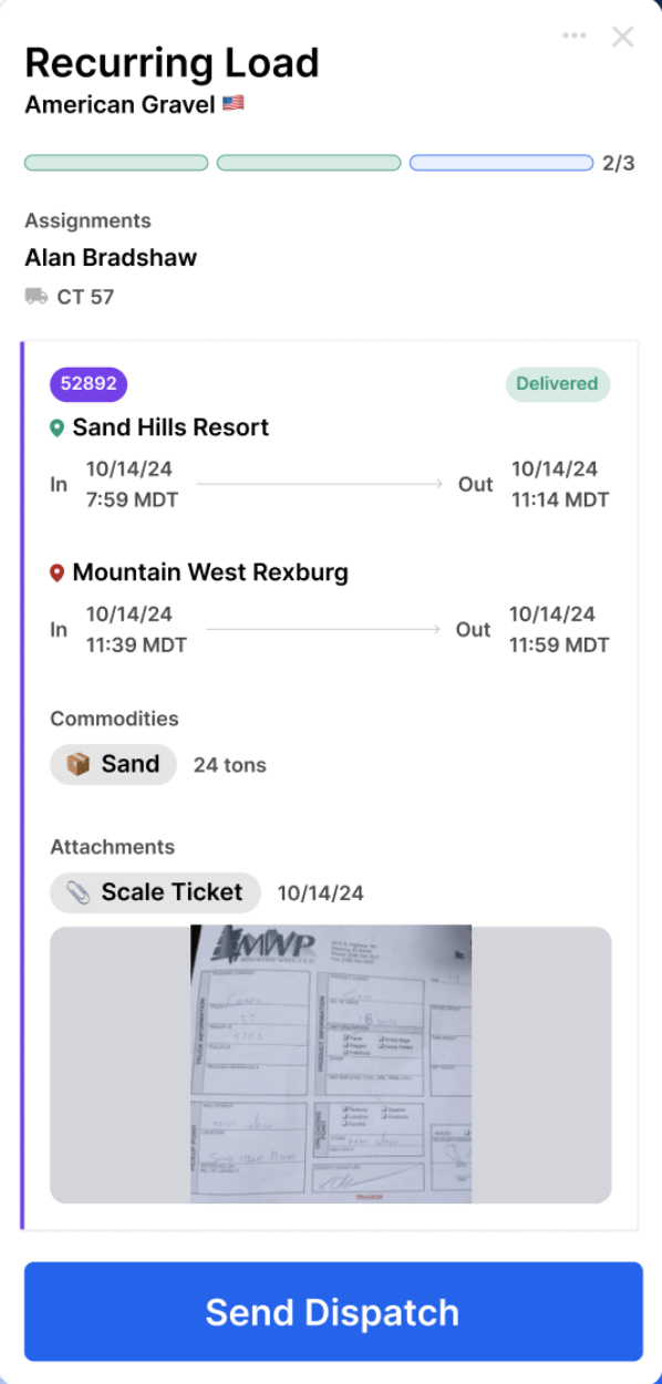 Assign vehicles or equipment to your team members and manage assignments in real time. Search by operator or by asset to access scheduled assignments. Quickly add, edit or move assignments and send automatic notifications to drivers and operators