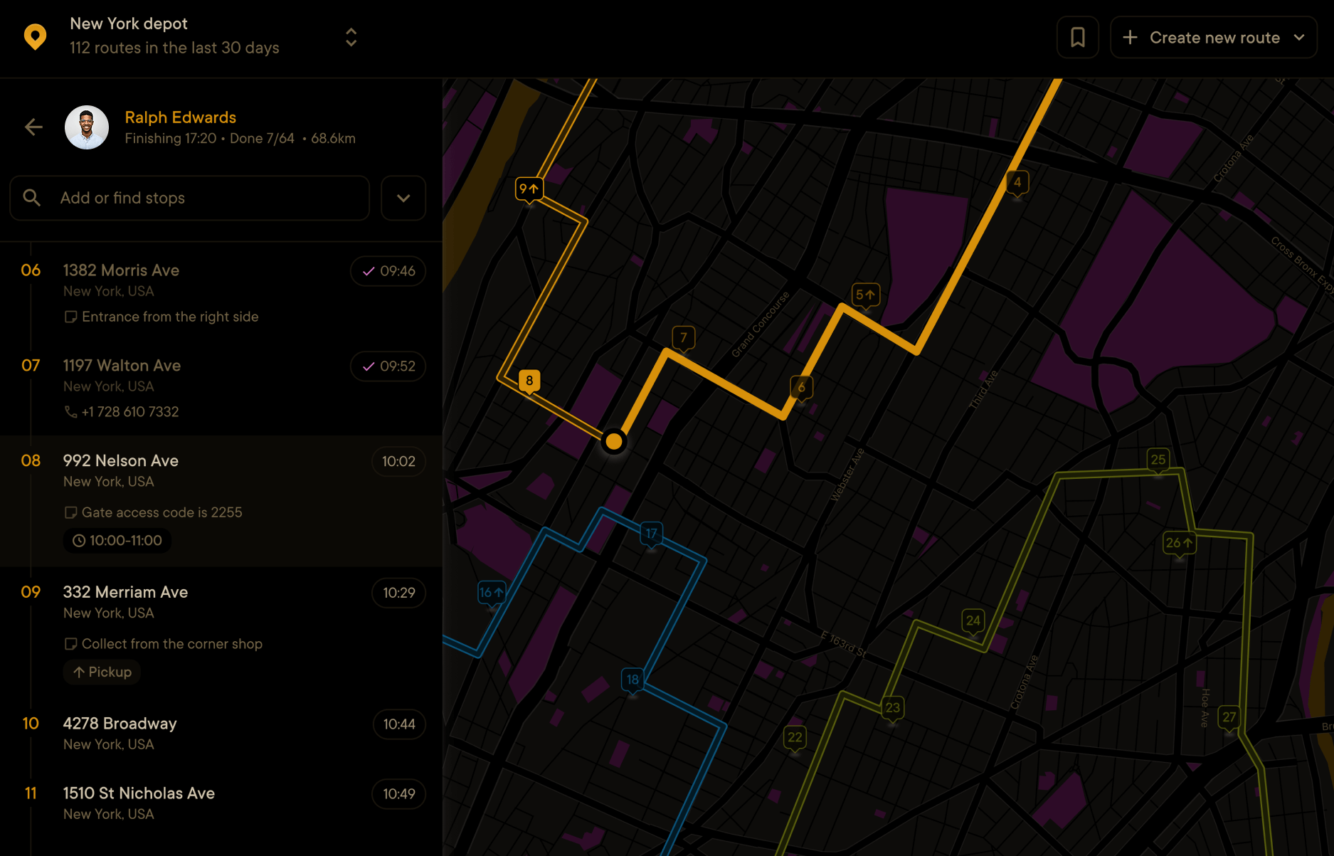 Plan, optimize, and assign routes faster. Instantly adapt to last-minute changes with live tracking and route management
